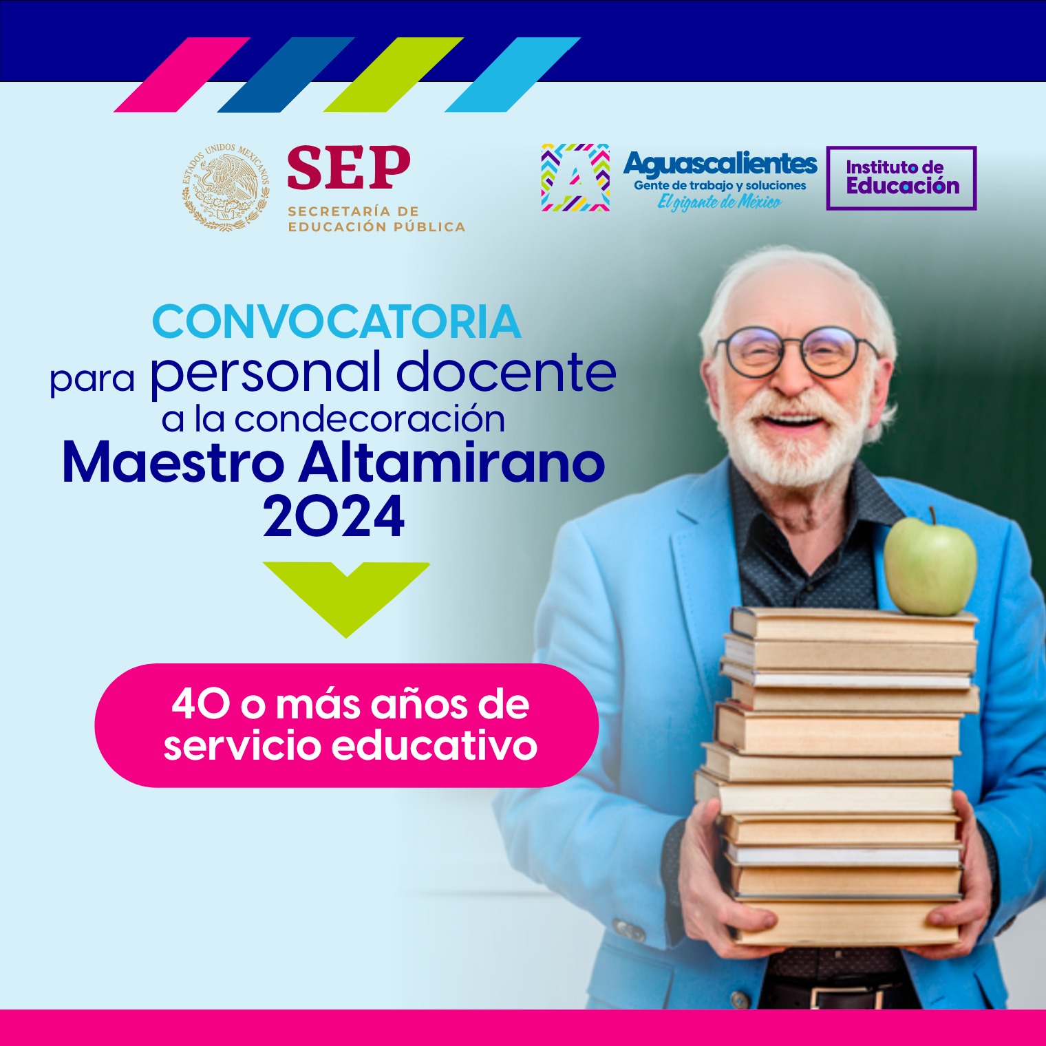 INVITAN A DOCENTES CON MÁS DE 40 AÑOS DE SERVICIO A CONCURSAR POR LA CONDECORACIÓN “MAESTRO ALTAMIRANO” 2024