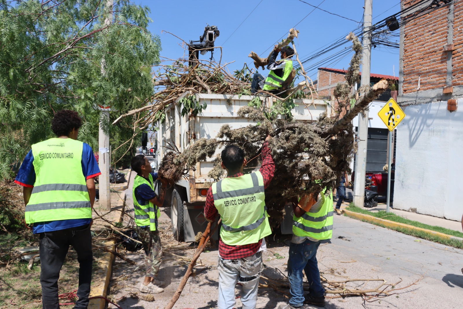 Voluntarios del servicio comunitario limpian la ciudad por lluvias