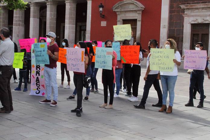 Estudiantes exigen vacunas; se manifiestan en Palacio de Gobierno Mediante una cadena humana afuera de Palacio de Gobierno, integrantes de la Federación Nacional de Estudiantes Revolucionarios en Aguascalientes se manifestaron…
