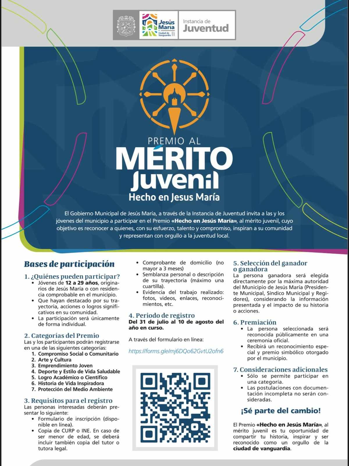 • Se invita a las y los jóvenes a participar en la convocatoria para el premio al mérito juvenil “Hecho en Jesús María” El Gobierno Municipal de Jesús María, a…